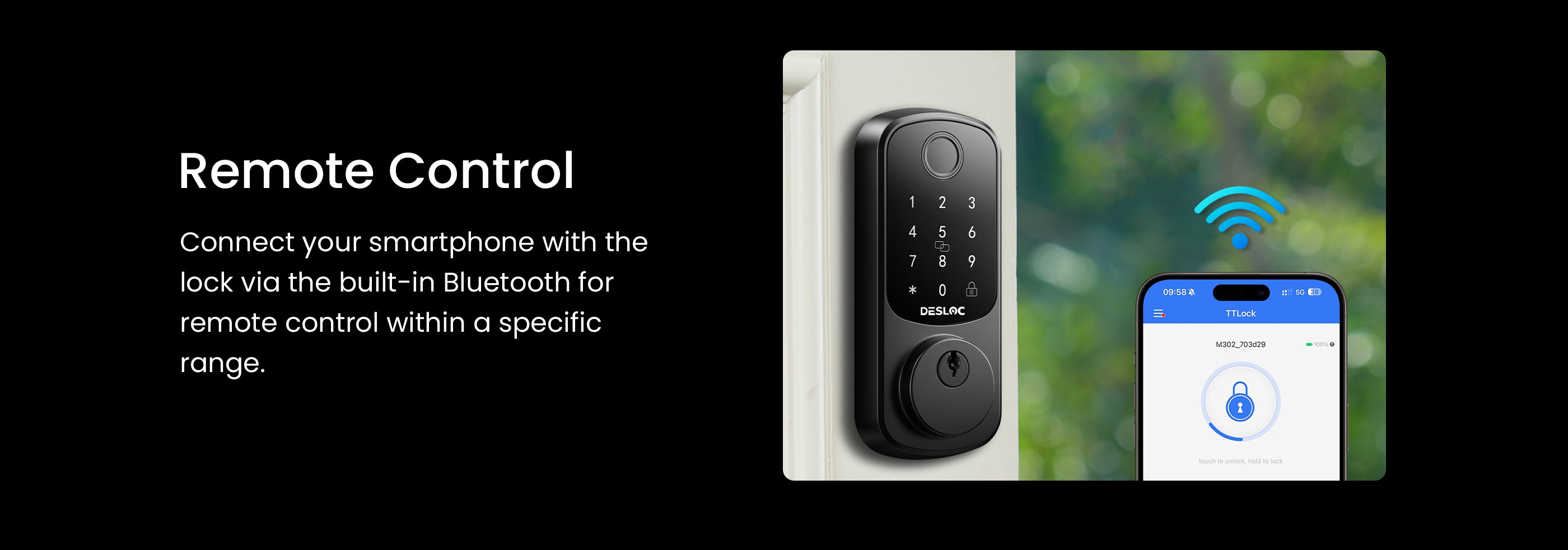 𝐀𝐩𝐩 & 𝐑𝐞𝐦𝐨𝐭𝐞 𝐂𝐨𝐧𝐭𝐫𝐨𝐥: Pair with Bluetooth for TTLock App control within the distance of 2 meters. Upgrade with G2 Gateway (sold separately) for remote control. Smart Lock B200 allows generate temporary access codes in scheduled time for friends or guests.