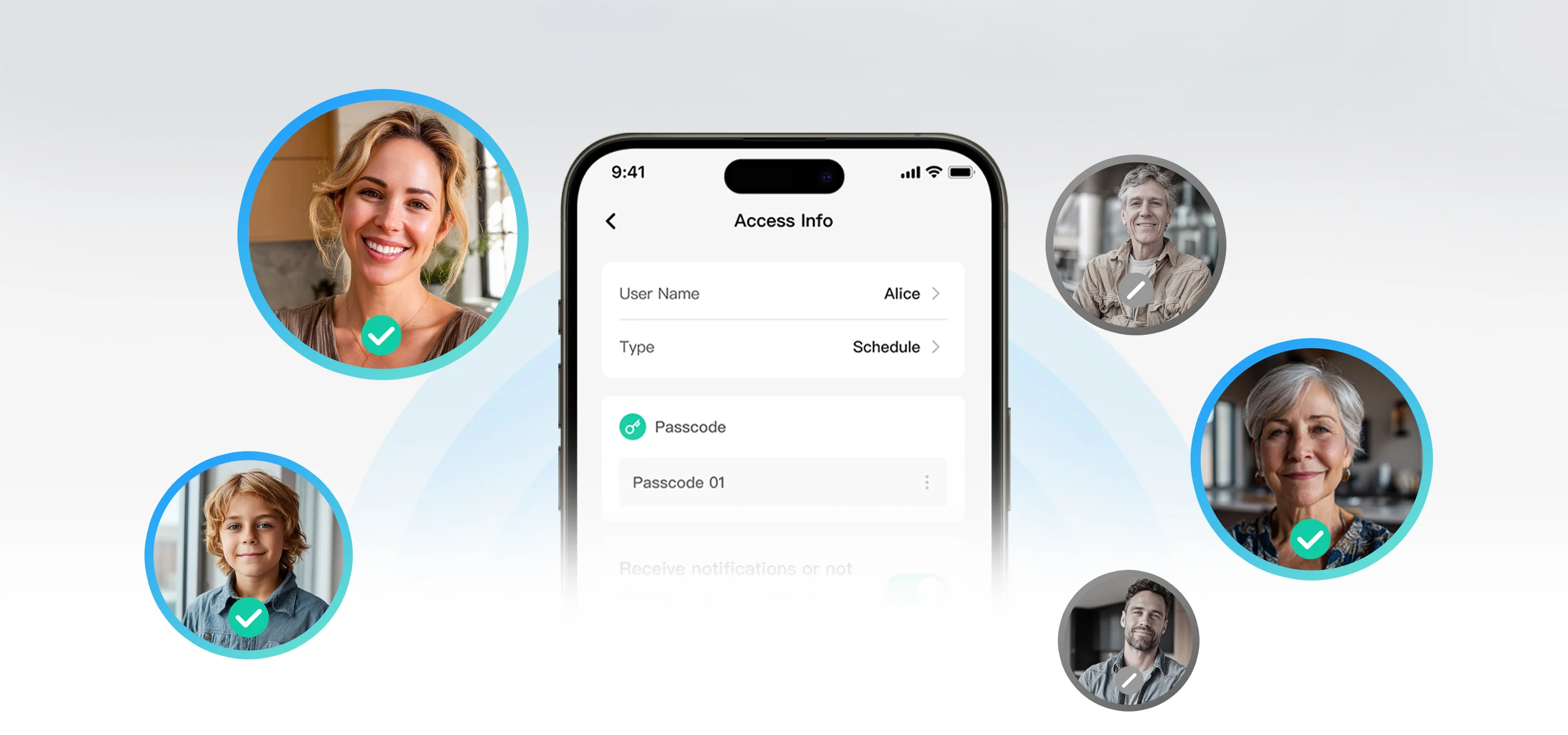 Generate 4 sets of temporary passcodes at once to simplify visitor management.