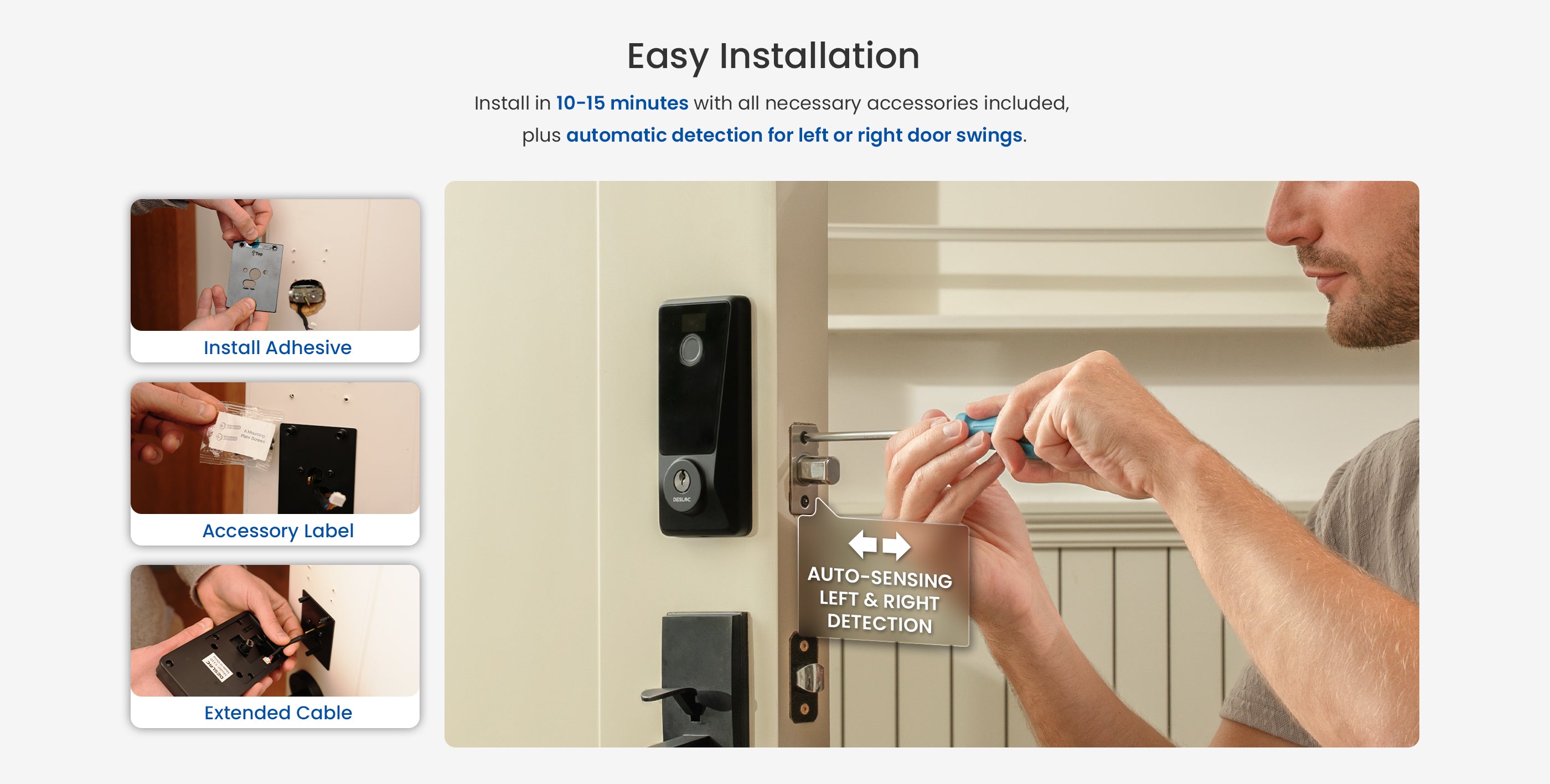 DESLOC D110 Plus is designed to be the best Wi-Fi door lockย for homeowners who value simplicity. Install in minutes with just a screwdriver โ no wiring, no hassle.