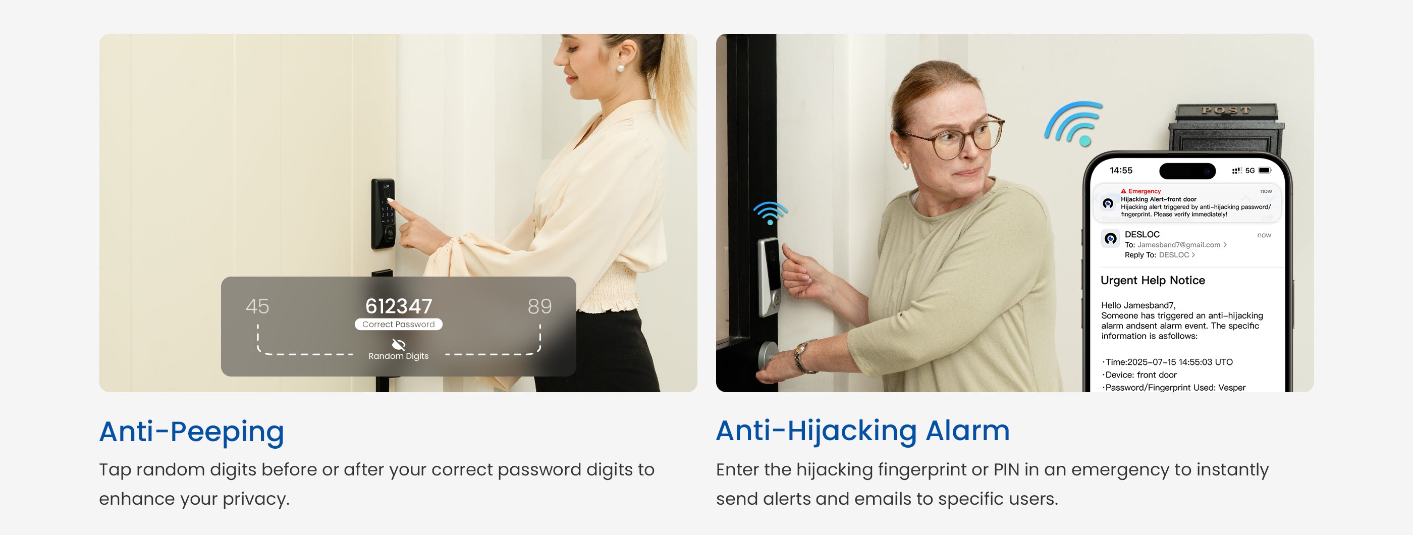 - Anti-Hijacking Alarm: Trigger instant alerts with a special fingerprint or PIN in emergencies.