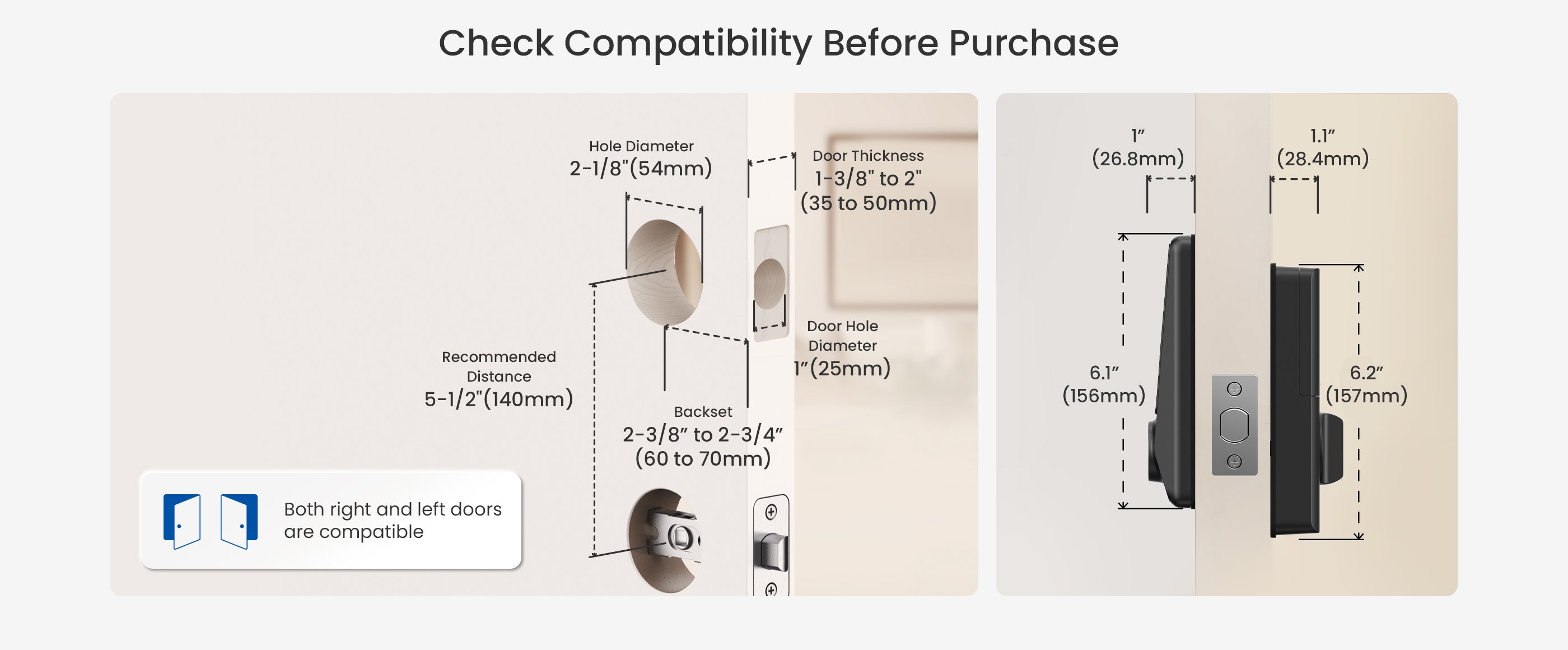 - Door thickness: 1-3/8" to 2"