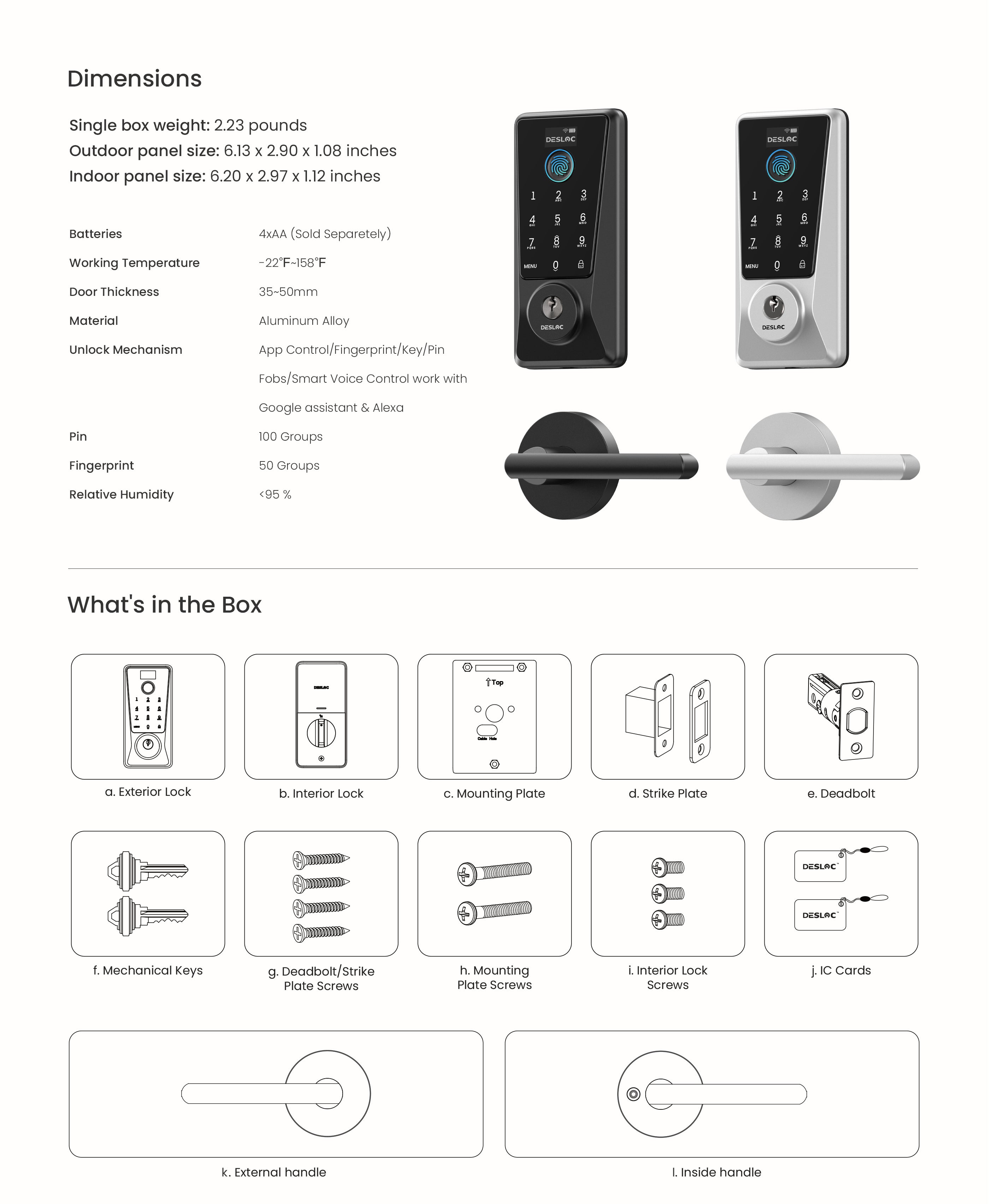 DESLOC D110 Plus Smart Lock with 2 Lever Handles